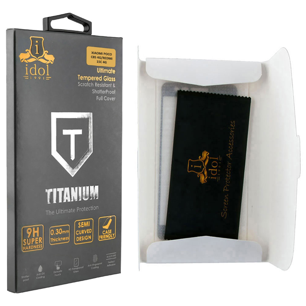 IDOL 1991 TEMPERED GLASS XIAOMI POCO C85 4G / REDMI 15C 4G 6.9" 9H 0.25mm TITANIUM SEMI CURVED FULL GLUE BLACK