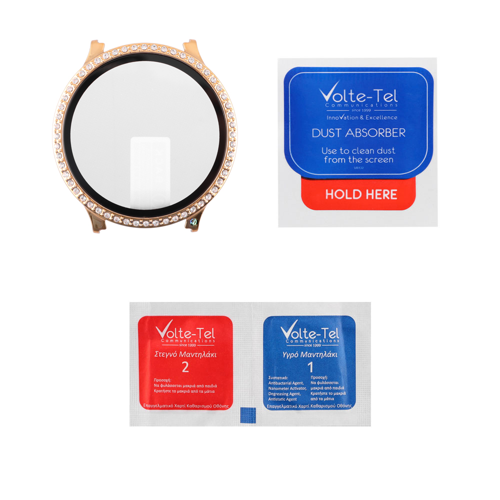 TEMPERED GLASS SAMSUNG WATCH 7 40mm 1.3" 9H 0.30mm PC EDGE COVER WITH STRASS 3D FULL GLUE FULL COVER GOLD