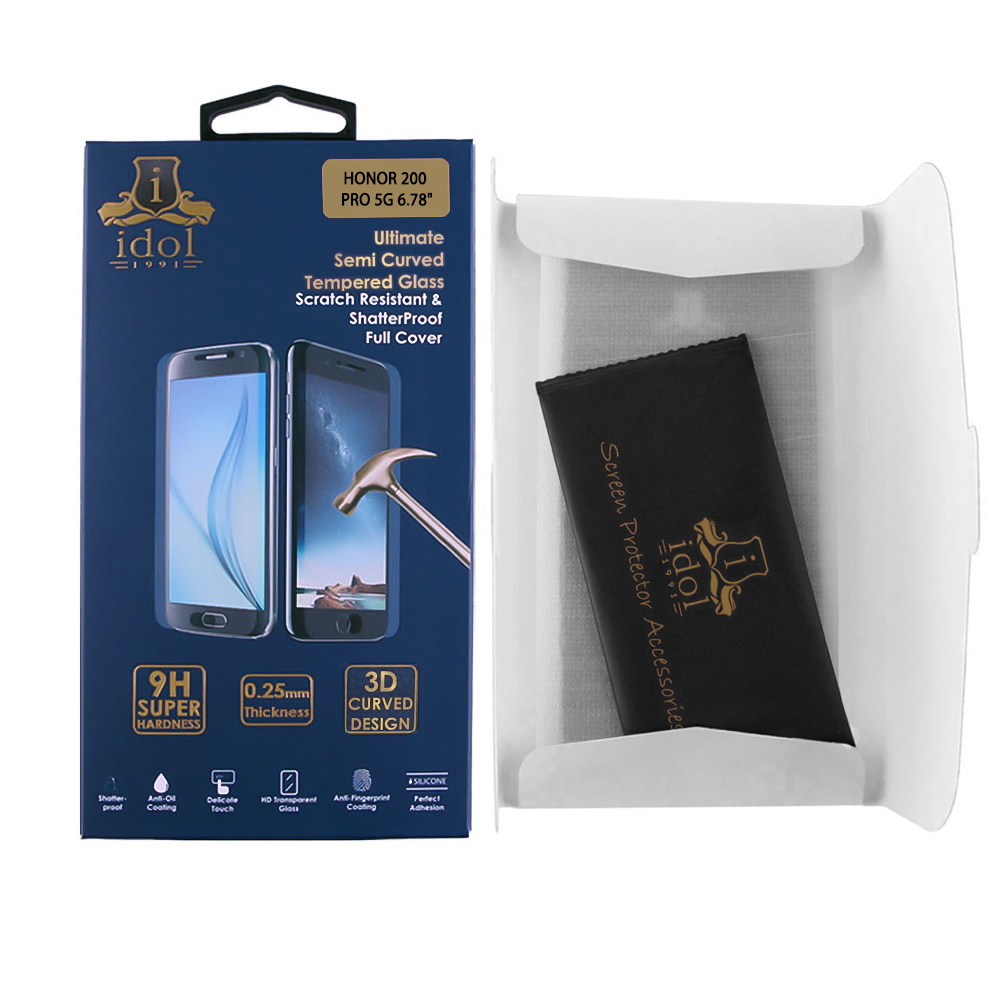 IDOL 1991 TEMPERED GLASS HONOR 200 PRO 5G 6.78" 9H 0.30mm 3D FULL GLUE SEMI CURVED FINGER UNLOCK BLACK + SQUEEZY CARD