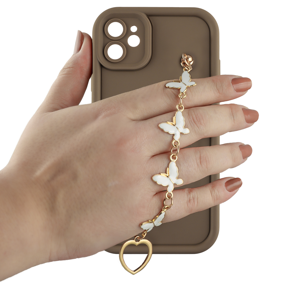 VOLTE-TEL ΘΗΚΗ IPHONE 11 6.1" SILICON TPU WITH STRAP FULL CAMERA PROTECTION BROWN WITH WHITE BUTTERFLIES