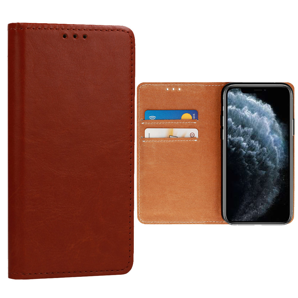 ΘΗΚΗ IPHONE 11 PRO 5.8" ITALIAN LEATHER MAGNET BOOK STAND BROWN