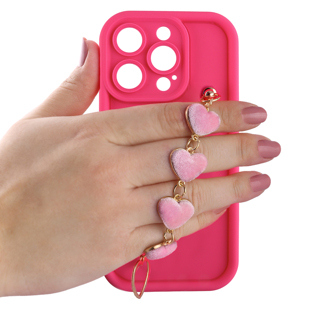 VOLTE-TEL ΘΗΚΗ IPHONE 14 PRO MAX 6.7" SILICON TPU WITH STRAP FULL CAMERA PROTECTION PINK WITH PINK HEARTS