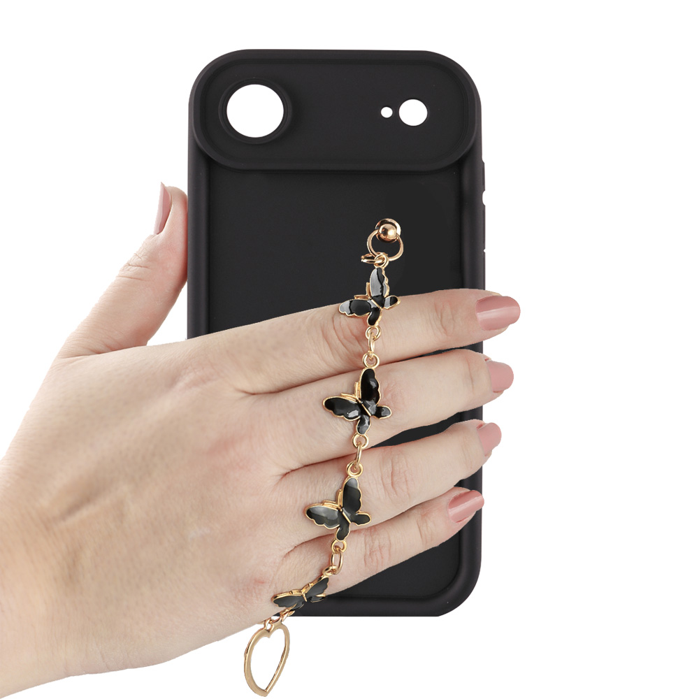 VOLTE-TEL ΘΗΚΗ IPHONE 17 AIR 6.5" SILICON TPU WITH STRAP FULL CAMERA PROTECTION BLACK WITH BLACK BUTTERFLIES