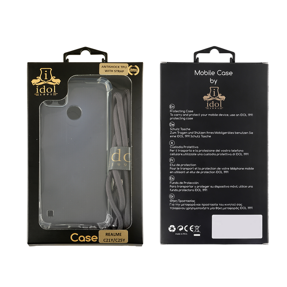 ΘΗΚΗ REALME C21Y / REALME C25Y 6.5" ANTISHOCK TPU WITH STRAP FULL CAMERA PROTECTION ΔΙΑΦΑΝΗ