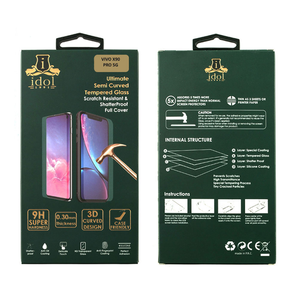 TEMPERED GLASS VIVO X90 PRO 5G 6.78" 9H 0.30mm 3D FULL GLUE SEMI CURVED FINGER UNLOCK BLACK FULL COVER