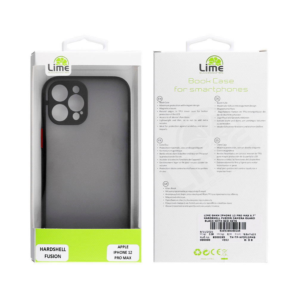 LIME ΘΗΚΗ IPHONE 12 PRO MAX 6.7" HARDSELL FUSION CAMERA GUARD BLACK WITH RED KEYS
