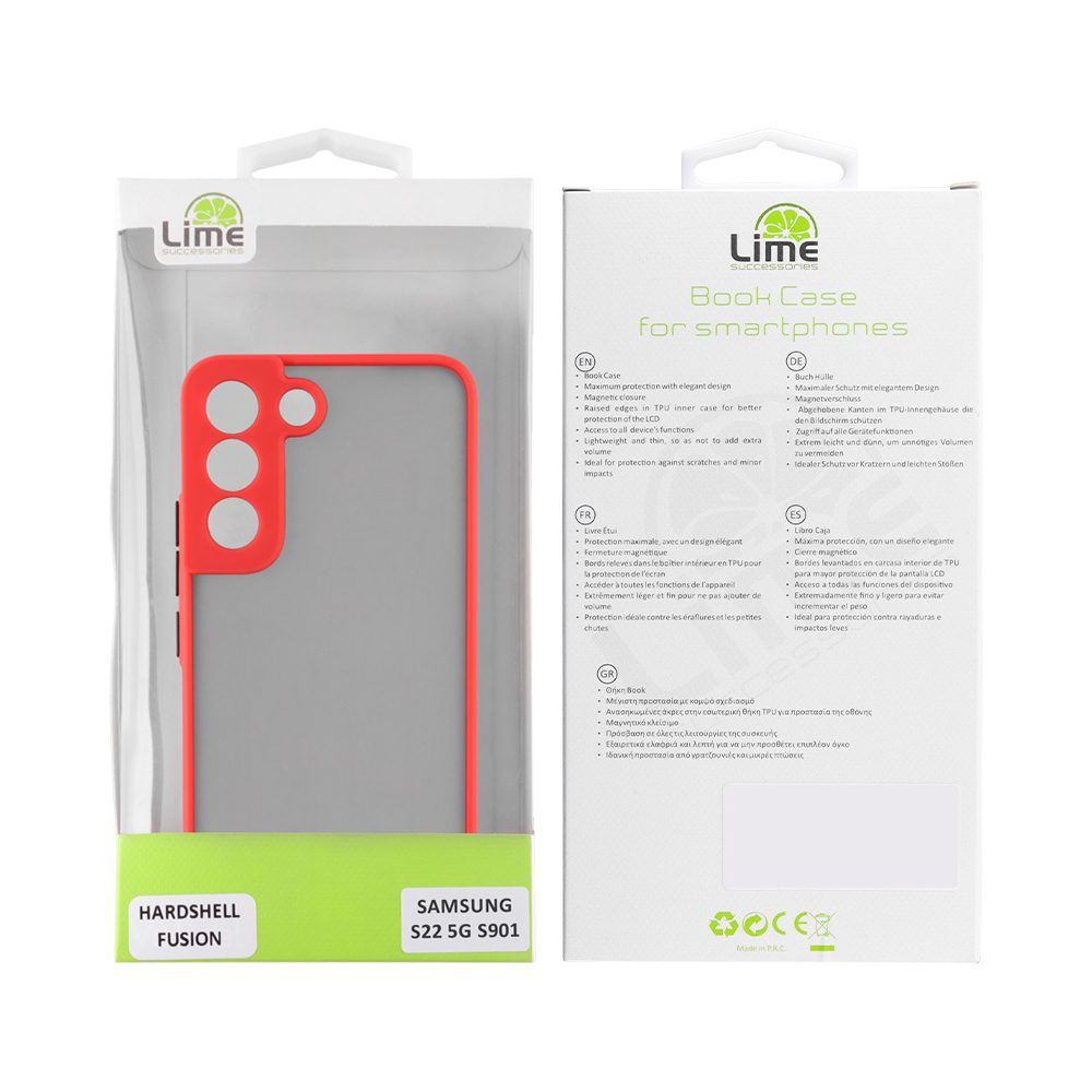 LIME ΘΗΚΗ SAMSUNG S22 5G S901 6.1" HARDSHELL FUSION FULL CAMERA PROTECTION RED WITH BLACK KEYS