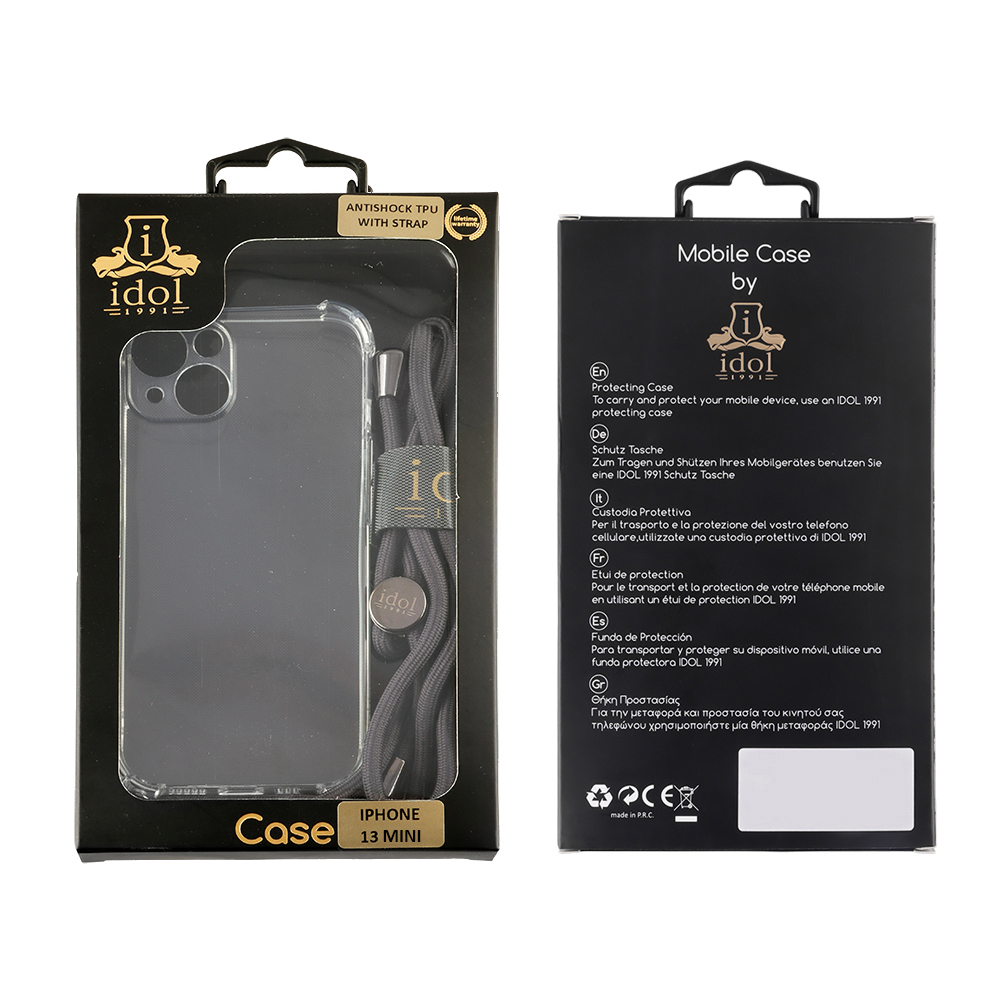 ΘΗΚΗ IPHONE 13 MINI 5.4" ANTISHOCK TPU WITH STRAP FULL CAMERA PROTECTION ΔΙΑΦΑΝΗ