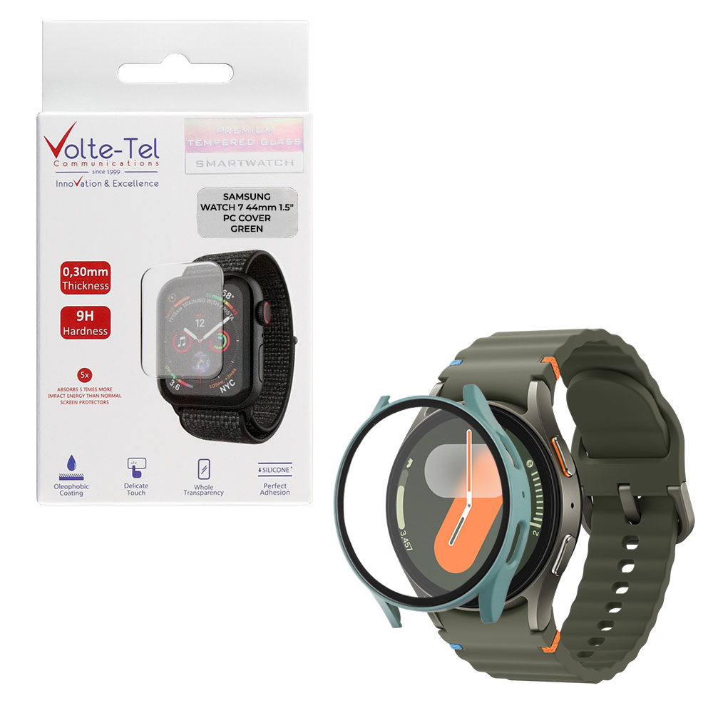 TEMPERED GLASS SAMSUNG WATCH 7 44mm 1.5" 9H 0.30mm PC EDGE COVER WITH KEY 3D FULL GLUE FULL COVER GREEN
