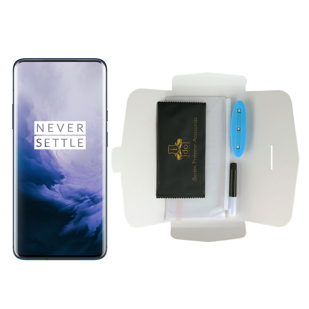 TEMPERED UV GLASS ONEPLUS 7 PRO 6.67" 9H 0.20mm 10D SEMI WITH GLUE-TOOL FINGER UNLOCK FULL COVER TRANSPARENT