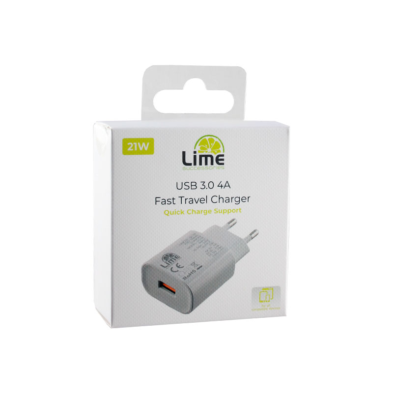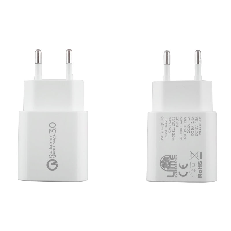 Τώρα μπορείτε να φορτίσετε το κινητό σας γρηγορότερα και πάντα με ασφάλεια με το νέο πιο γρήγορο φορτιστή FAST TRAVEL CHARGER QC 3.0 LTU24 21W 4000mA από την LIME SUCCESSORIES . Ο νέος αυτός φορτιστής χρησιμοποιεί την τεχνολογία Quick Charge 3.0 και προσφέρει 5 φορές μεγαλύτερη ταχύτητα φόρτισης, σε σύγκριση με τους συμβατικούς ταχυφορτιστές. Χάρη σε αυτόν θα είστε σε θέση να φορτίσετε ταχύτατα την μπαταρία του αγαπημένου σας Smartphone από το 0% σε 80% σε μόλις 35 λεπτά, ενώ είναι παράλληλα συμβατός και με τις τεχνολογίες Quick Charge 2.0/Quick Charge/Adaptive Fast Charging (Samsung)/SuperCharge (Huawei) και φυσικά Fast Charging για το 80% των μοντέλων της αγοράς. Επιπλέον διαθέτει εξελιγμένο κύκλωμα με πολλαπλά επίπεδα ασφάλειας που ρυθμίζει την φόρτιση για μέγιστη απόδοση αλλά και ασφάλεια. Τέλος αξίζει να σημειωθεί ότι μπορείτε να τον χρησιμοποιήσετε και ως έναν συμβατικό φορτιστή για να φορτίζετε το αγαπημένο σας Smartphone ή Tablet.