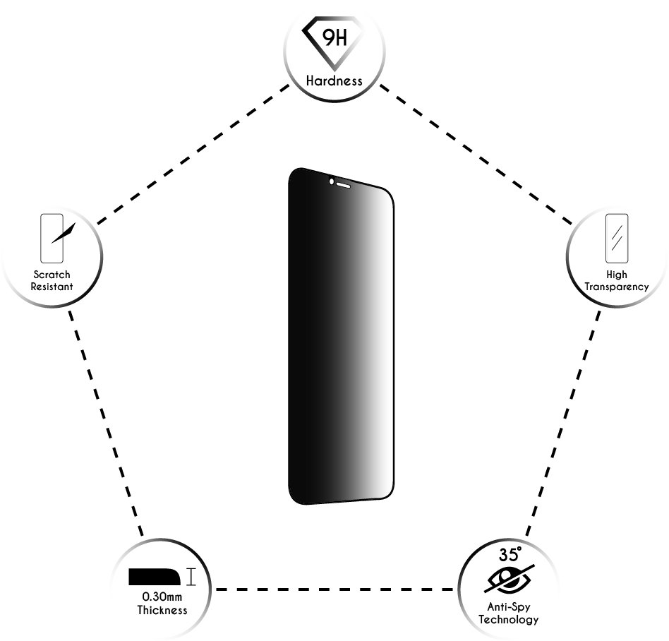 Το συγκεκριμένο Tempered Glass χρησιμεύει ως φίλτρο πόλωσης και εμποδίζει το φως όταν κάποιος κοιτάζει την οθόνη από το πλάι σε γωνία 35ο, είναι σχεδιασμένο έτσι ώστε να είναι απόλυτα συμβατό με θήκες που διαθέτουν ανασηκωμένες άκρες για την προστασία της οθόνης του κινητού.