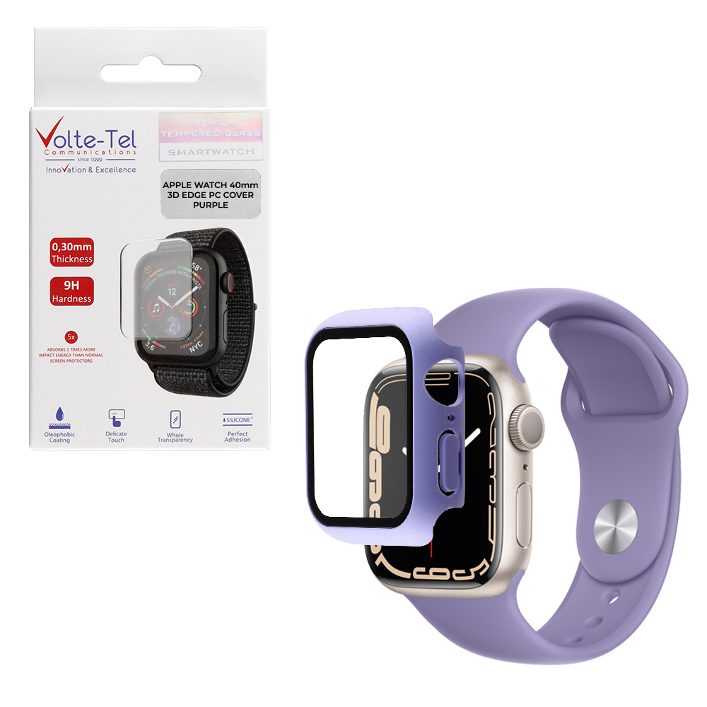 TEMPERED GLASS APPLE WATCH 40mm 1.57" 9H 0.30mm PC EDGE COVER WITH KEY 3D FULL GLUE FULL COVER PURPLE