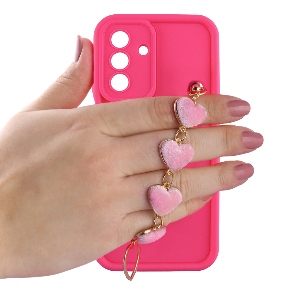 VOLTE-TEL ΘΗΚΗ SAMSUNG A26 5G A266 6.7" SILICON TPU WITH STRAP FULL CAMERA PROTECTION PINK WITH PINK HEARTS