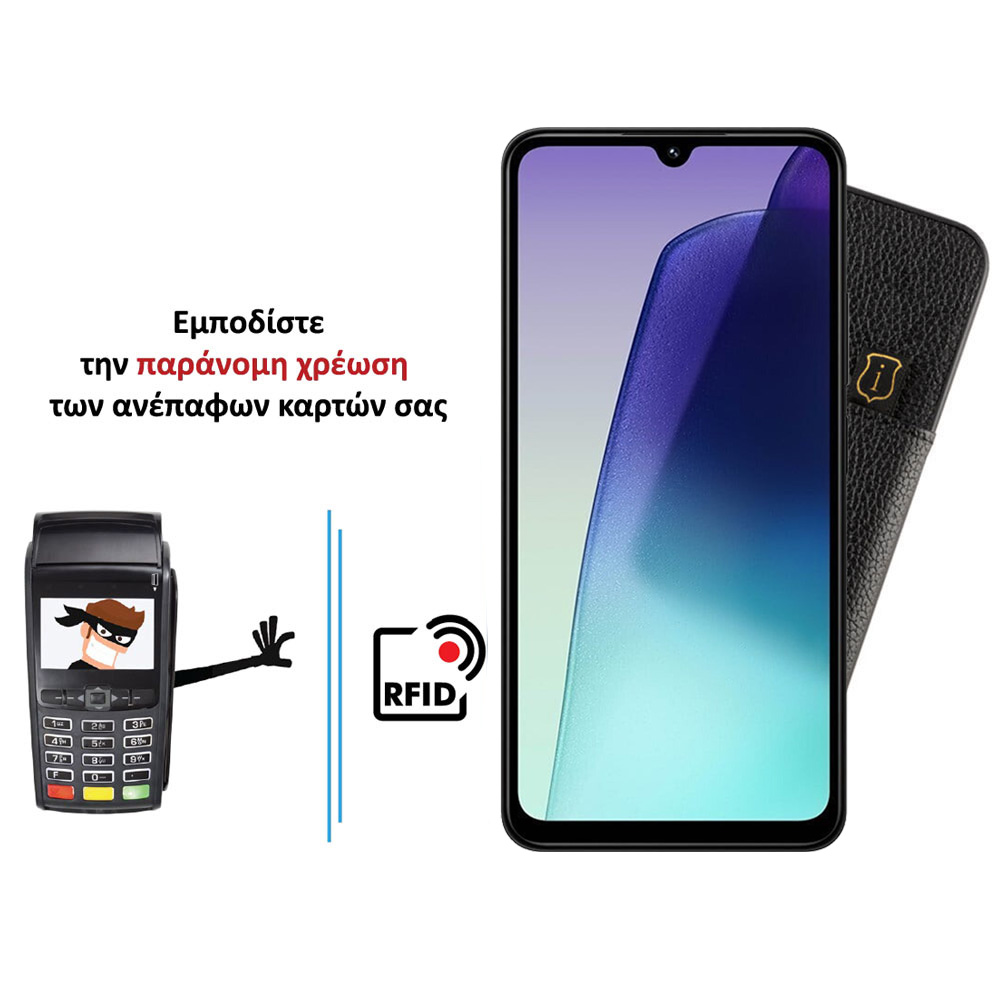 IDOL 1991 ΘΗΚΗ XIAOMI REDMI 14C / REDMI A4 / POCO C75 / POCO M7 6.88" ANTI-RFID LEATHER SMART WALLET CAMERA GUARD BLACK
