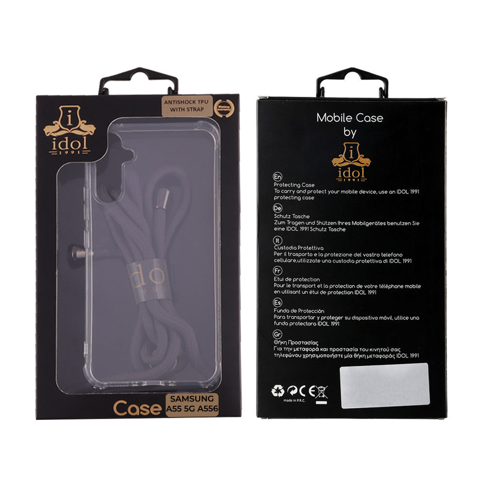 ΘΗΚΗ SAMSUNG A55 5G A556 6.5" ANTISHOCK AIR TPU WITH STRAP FULL CAMERA PROTECTION ΔΙΑΦΑΝΗ