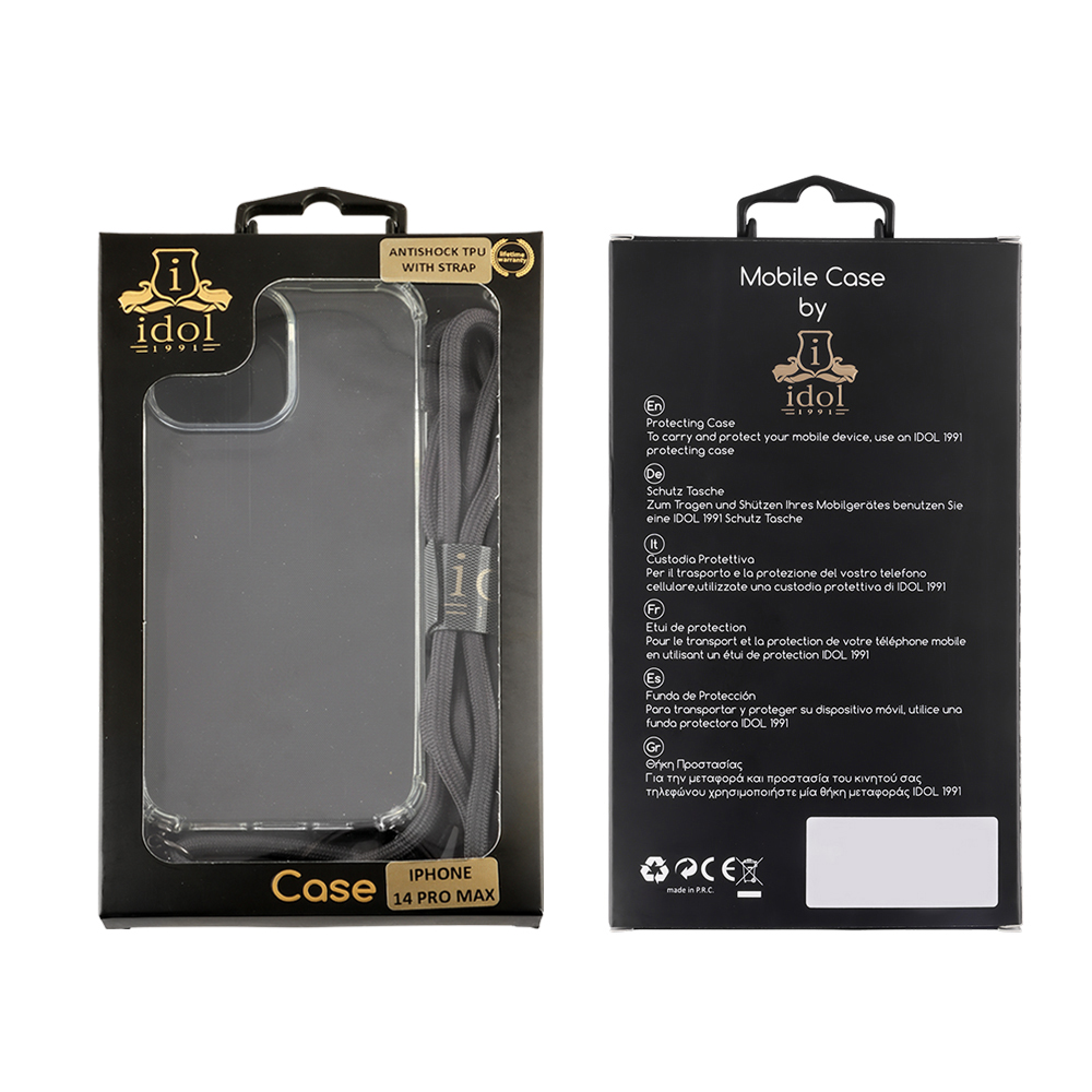 ΘΗΚΗ IPHONE 14 PRO MAX 6.7" ANTISHOCK TPU WITH STRAP FULL CAMERA PROTECTION ΔΙΑΦΑΝΗ