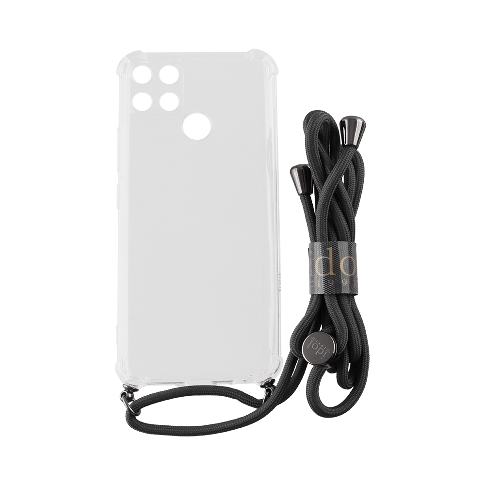 Πρόκειται για ένα κομψό κορδόνι το οποίο καταλήγει σε μια αποσπώμενη διάφανη ANTISHOCK AIR TPU θήκημε βίδες, στην οποία έχει προστεθεί περισσότερο υλικό TPU στις γωνίες της θήκης το οποίο έχει κενό εσωτερικά και λειτουργεί σαν αερόσακος απορροφώντας τους κραδασμούς σε μια πιθανή πτώση.