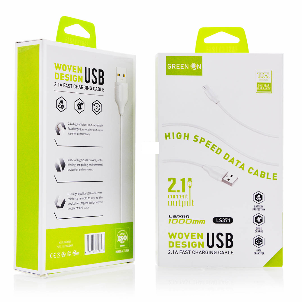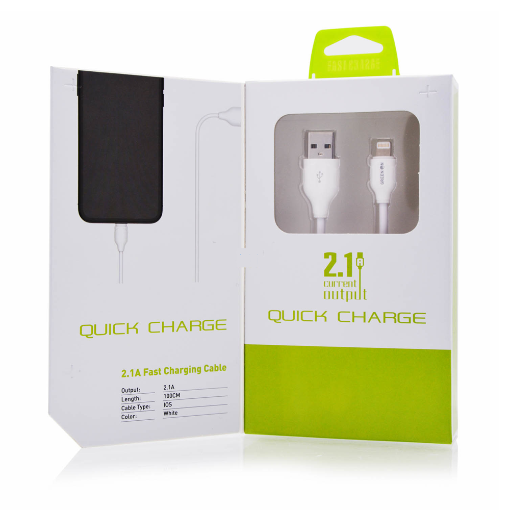 GREEN ON ΚΑΛΩΔΙΟ ΦΟΡΤΙΣΗΣ - LIGHTNING FAST CHARGING 2.1A 1m LS731 WHITE