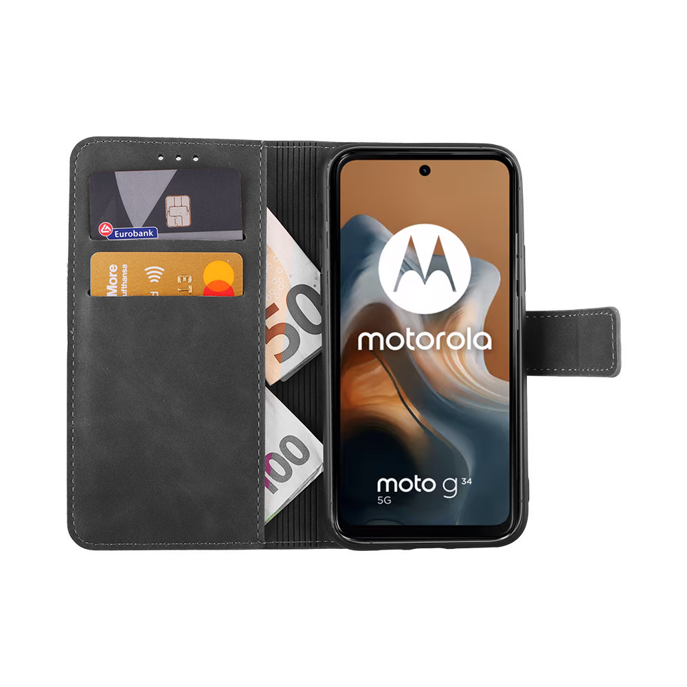 LIME ΘΗΚΗ MOTOROLA MOTO G35 5G 6.72" ESSENTIAL MAGNET BOOK STAND CLIP GREY