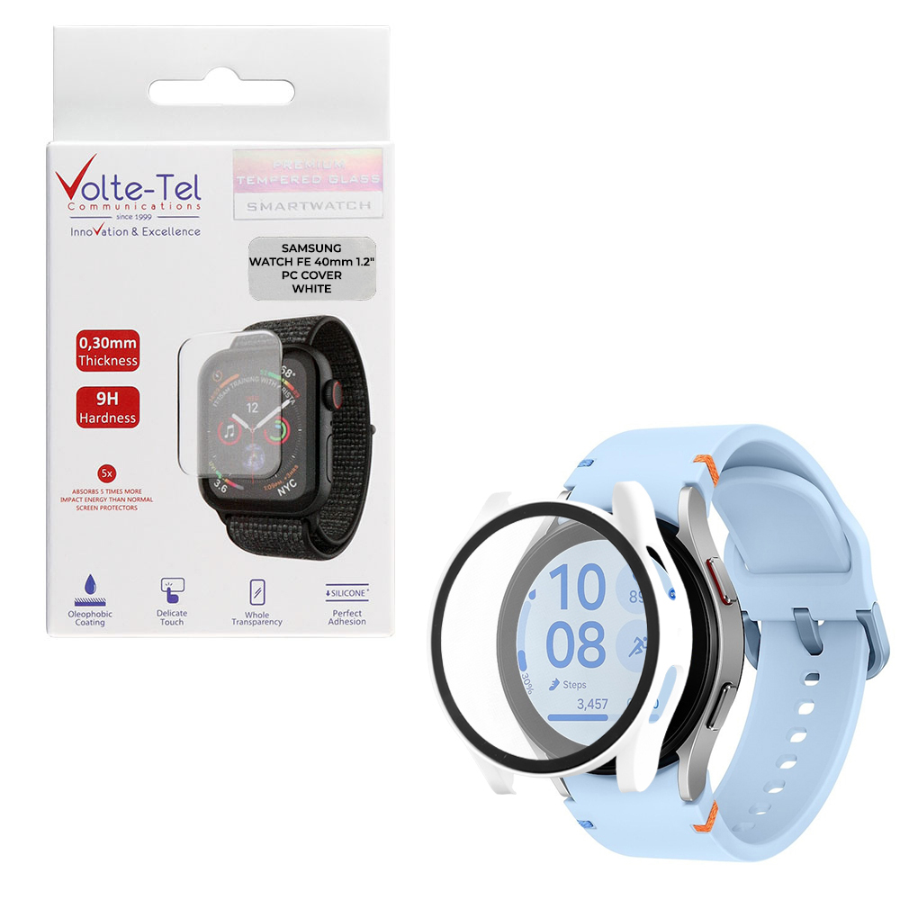 TEMPERED GLASS SAMSUNG WATCH FE 40mm 1.2" 9H 0.30mm PC EDGE COVER WITH KEY 3D FULL GLUE FULL COVER WHITE