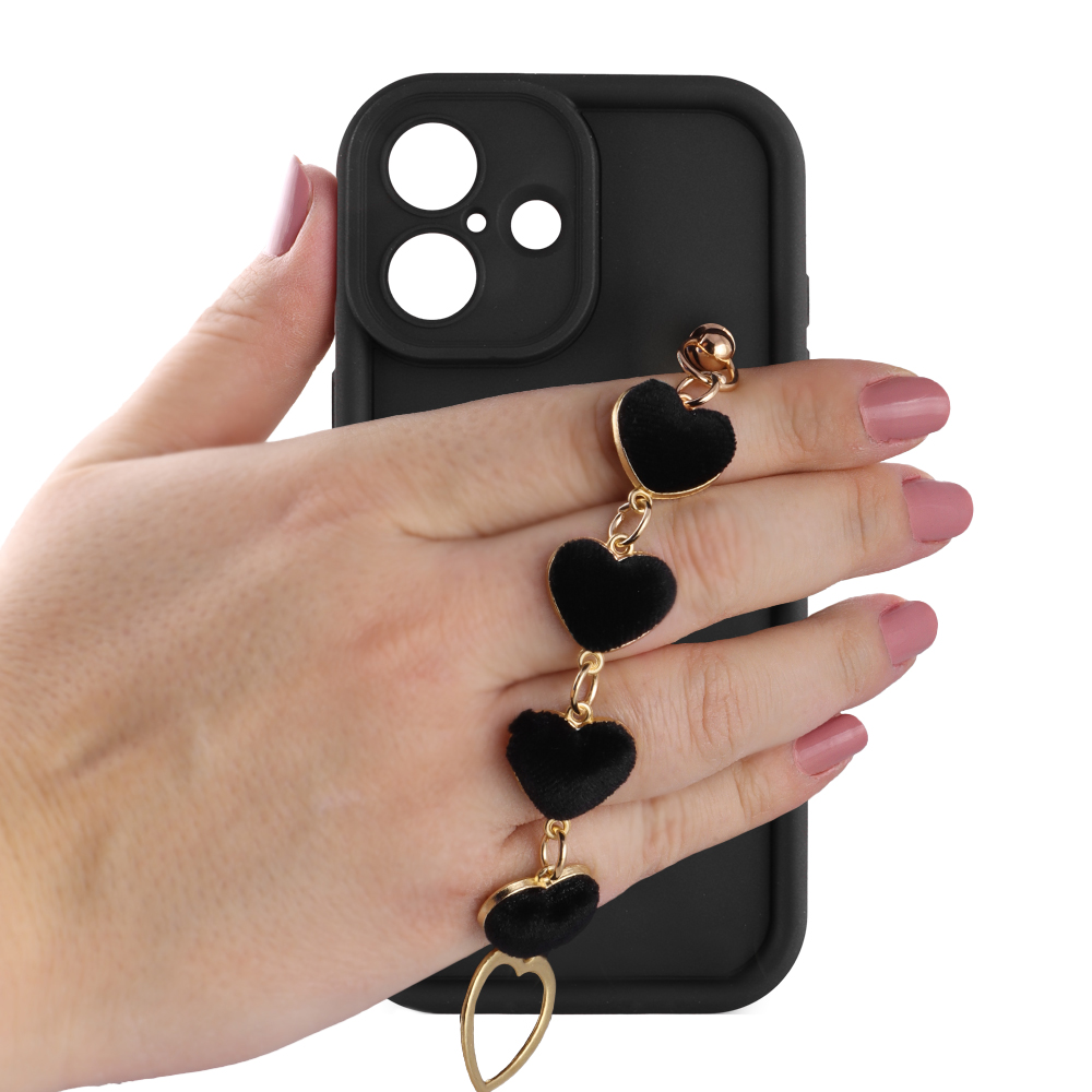 VOLTE-TEL ΘΗΚΗ IPHONE 16 6.1" SILICON TPU WITH STRAP FULL CAMERA PROTECTION BLACK WITH BLACK HEARTS