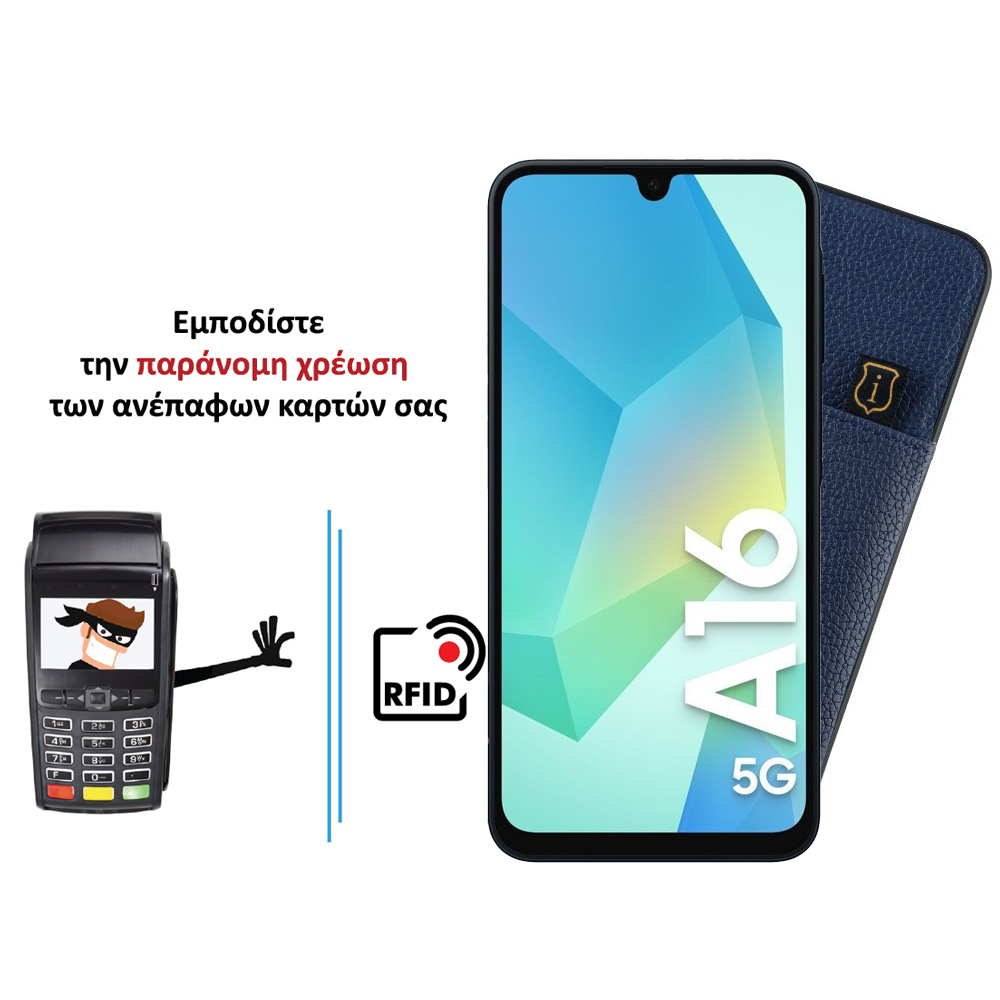 IDOL 1991 ΘΗΚΗ SAMSUNG A16 4G A165 / A16 5G A166 6.7" ANTI-RFID LEATHER SMART WALLET CAMERA GUARD BLUE
