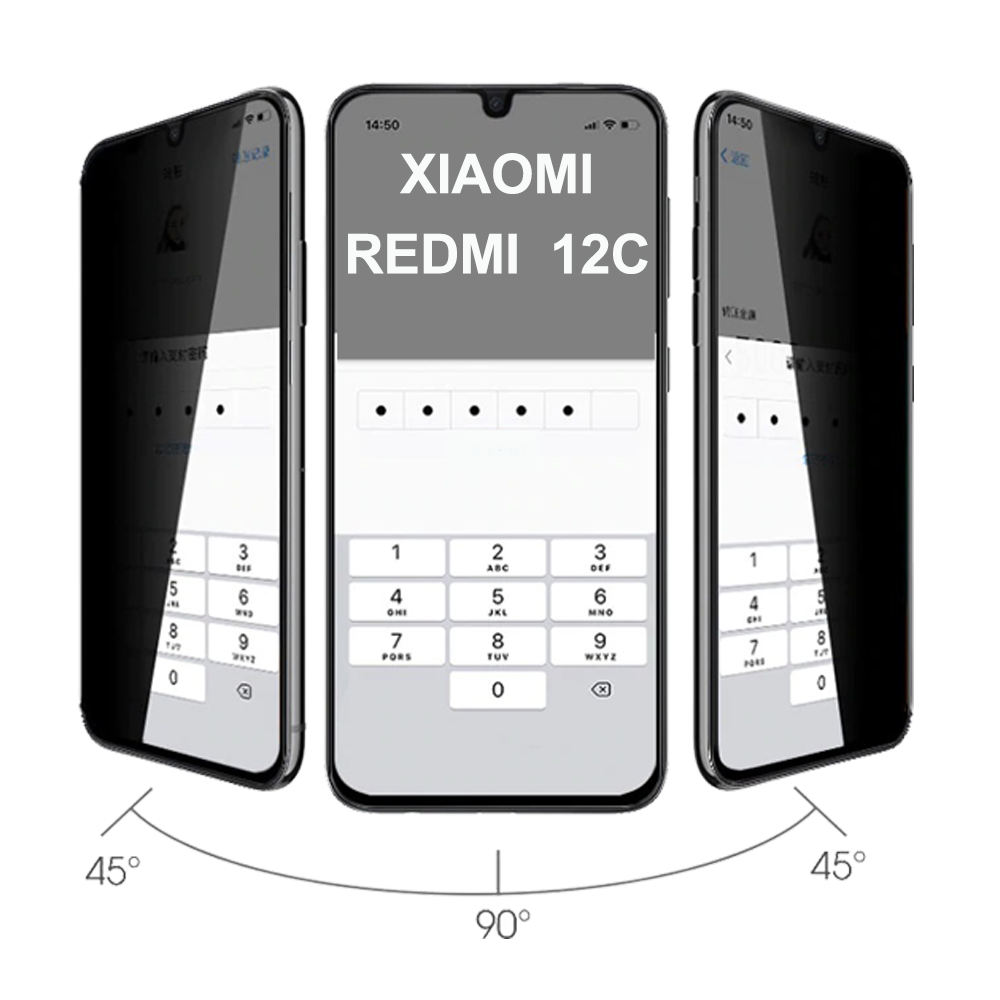 PRIVACY ANTISPY TEMPERED GLASS XIAOMI REDMI 12C 6.71" 9H 0.30mm FULL FACE FULL GLUE BLACK