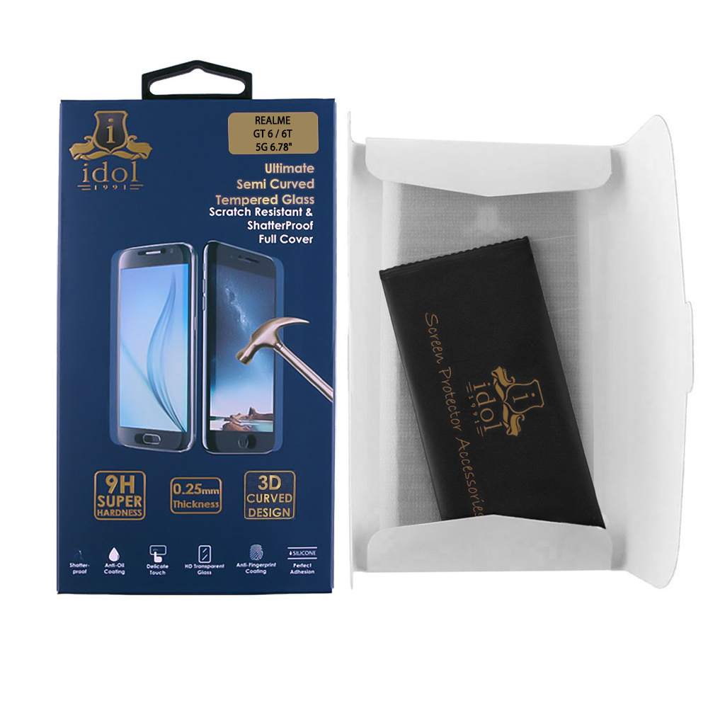 IDOL 1991 TEMPERED GLASS REALME GT 6 / 6T 5G 6.78" 9H 0.30mm 3D FULL GLUE SEMI CURVED FINGER UNLOCK BLACK +SQUEEZY CA