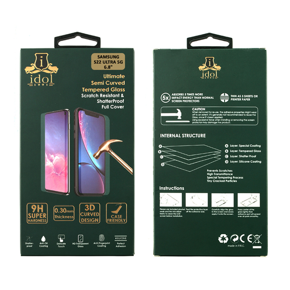 TEMPERED GLASS SAMSUNG S22 ULTRA 5G 6.8" 9H 0.25mm 3D FULL GLUE SEMI CURVED FINGER UNLOCK BLACK + SQUEEZY CARD