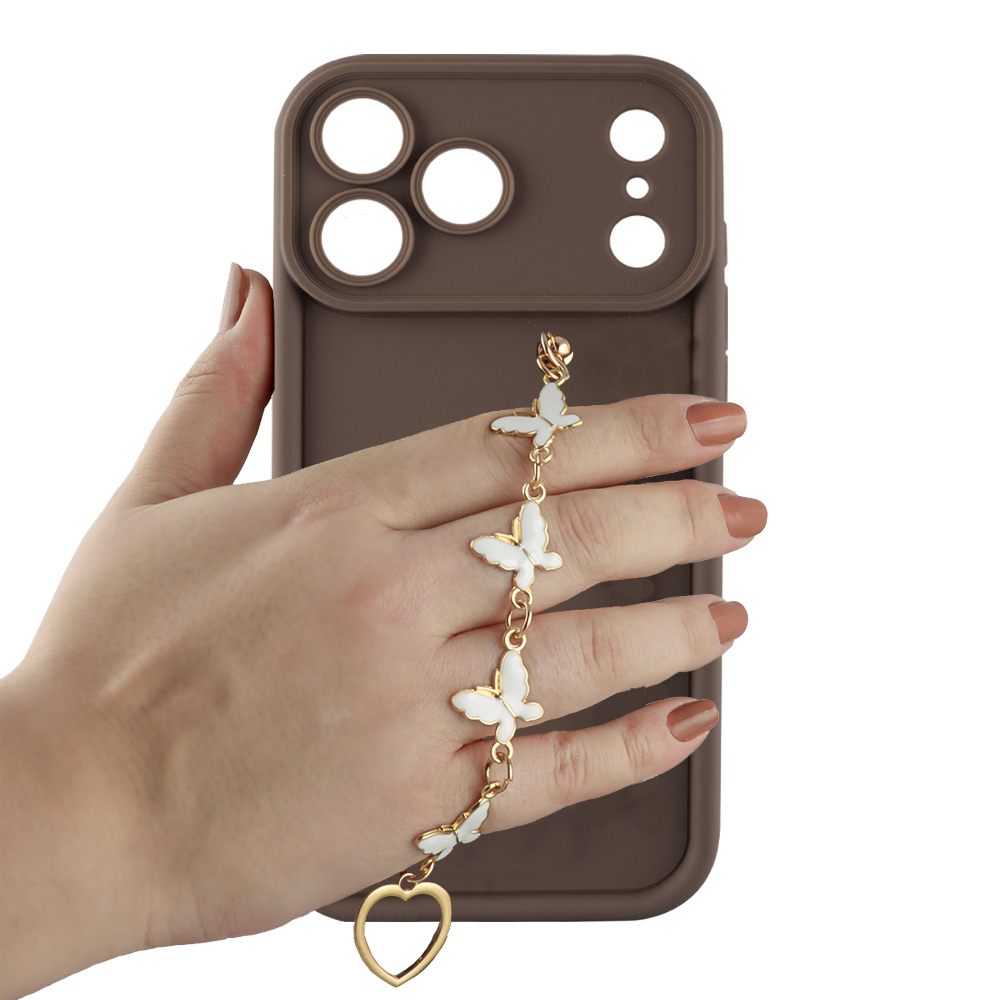 VOLTE-TEL ΘΗΚΗ IPHONE 17 PRO MAX 6.9" SILICON TPU WITH STRAP FULL CAMERA PROTECTION BROWN WITH WHITE BUTTERFLIES
