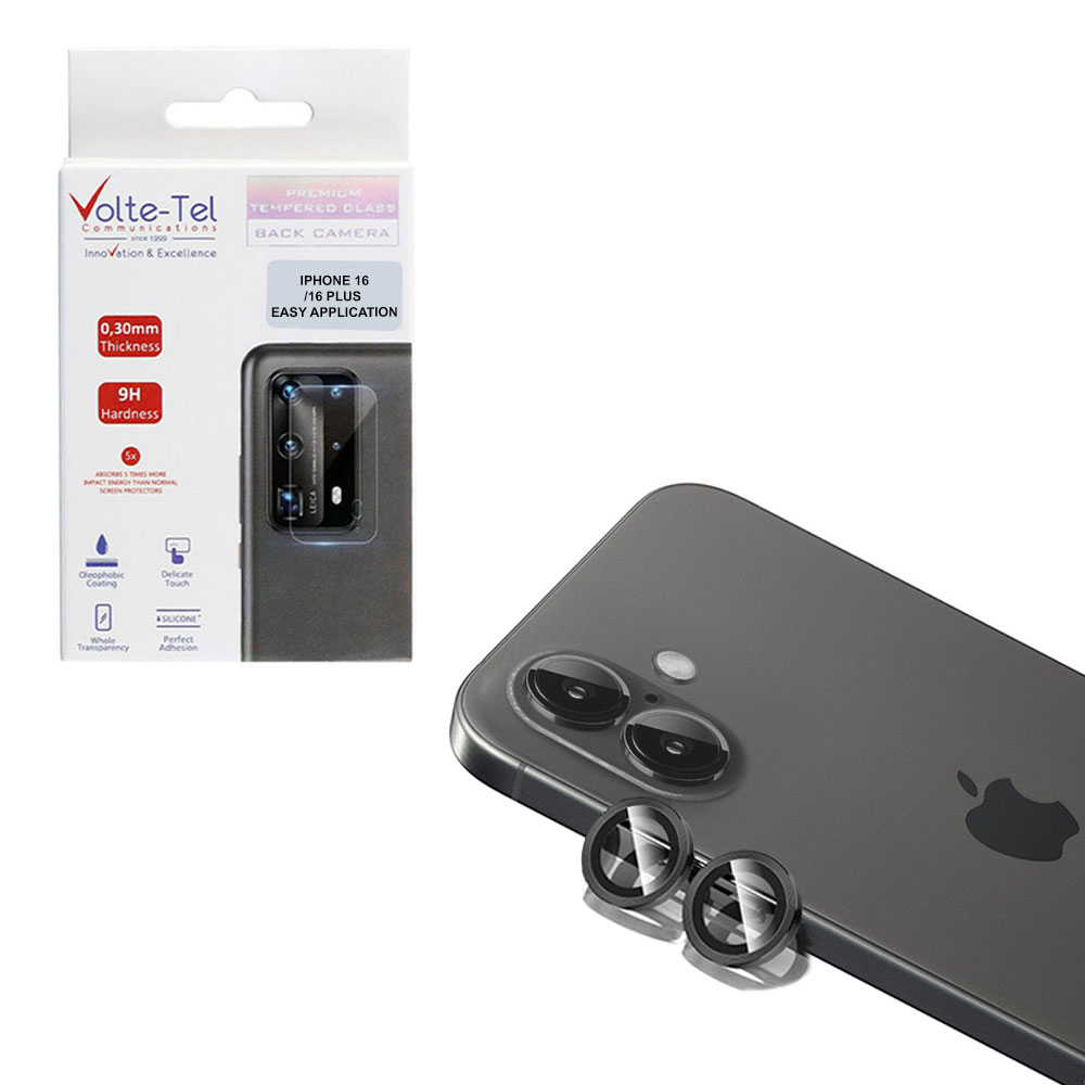 VOLTE-TEL CAMERA GLASS COVER IPHONE 16 / IPHONE 16 PLUS 9H 0.30MM EASY APPLICATION BLACK