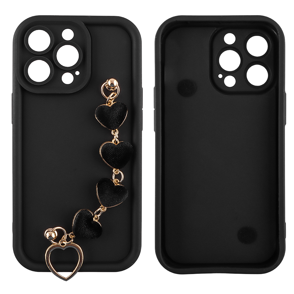 VOLTE-TEL ΘΗΚΗ IPHONE 13 PRO 6.1" SILICON TPU WITH STRAP FULL CAMERA PROTECTION BLACK WITH BLACK HEARTS