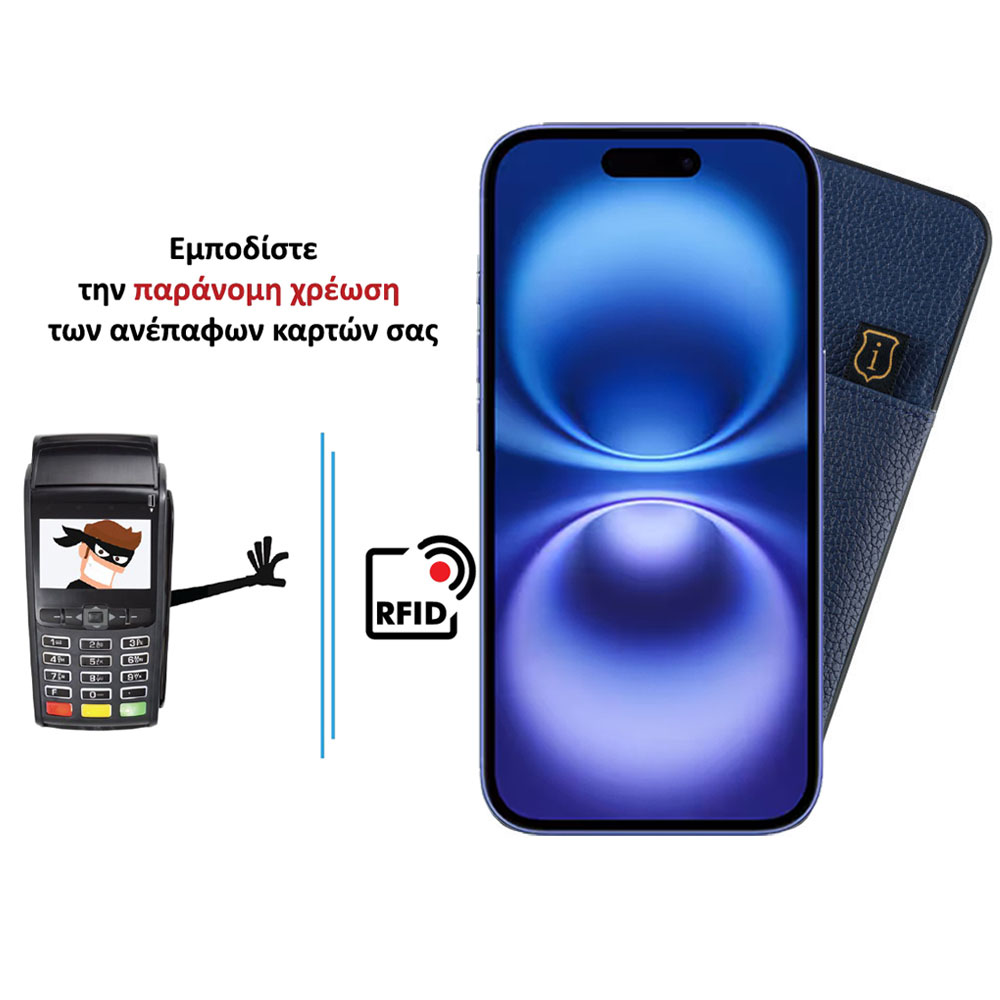 IDOL 1991 ΘΗΚΗ IPHONE 16 PLUS 6.9" ANTI-RFID LEATHER SMART WALLET BLUE