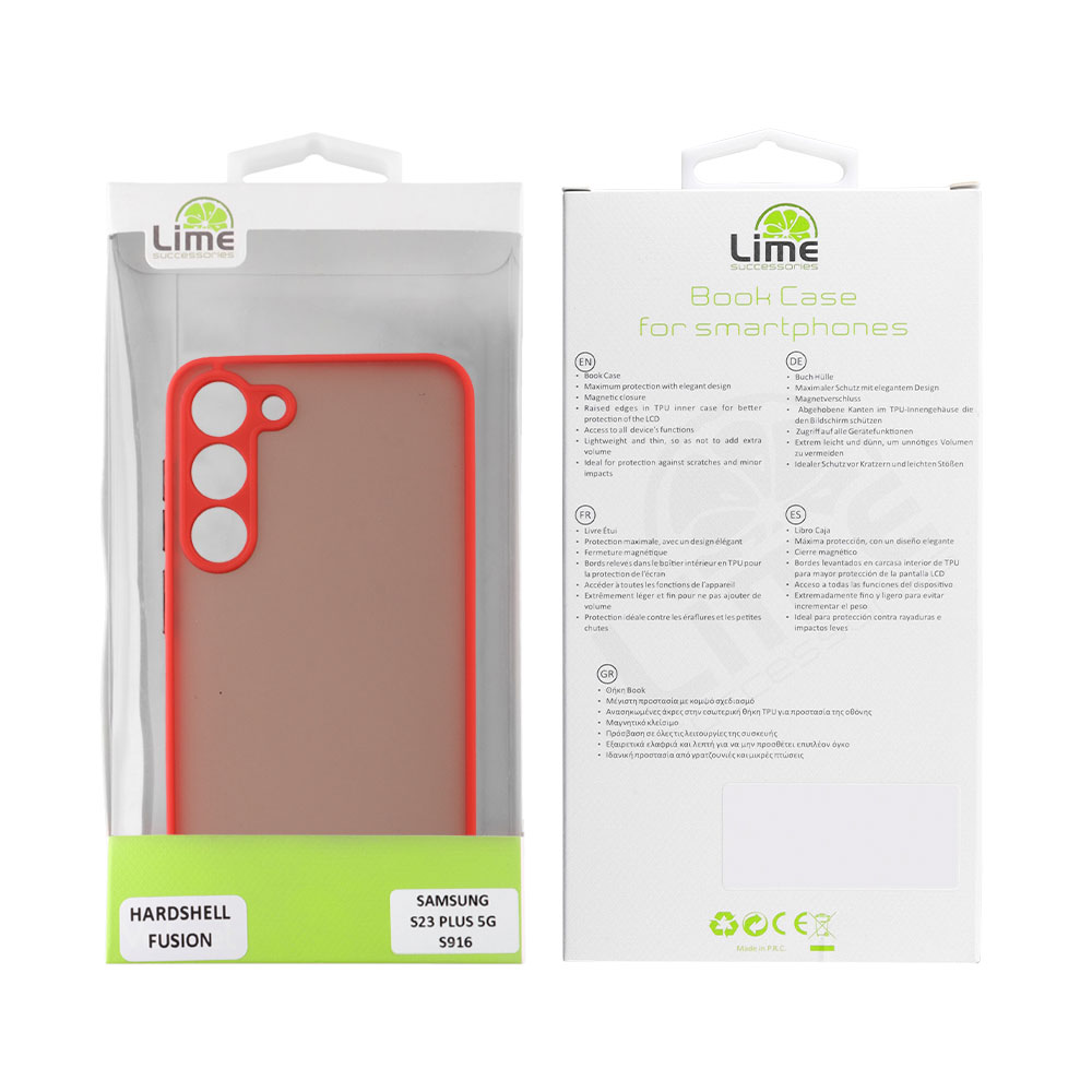 LIME ΘΗΚΗ SAMSUNG S23 5G S911 6.1" HARDSHELL FUSION FULL CAMERA PROTECTION RED WITH BLACK KEYS