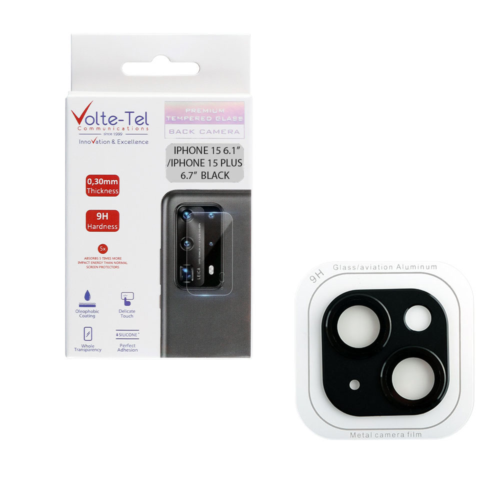 CAMERA GLASS COVER IPHONE 15 6.1" / IPHONE 15 PLUS 6.7" 9H 0.30MM 3D AR ALUMINIUM-ELECTROPLATING FRAME BLACK