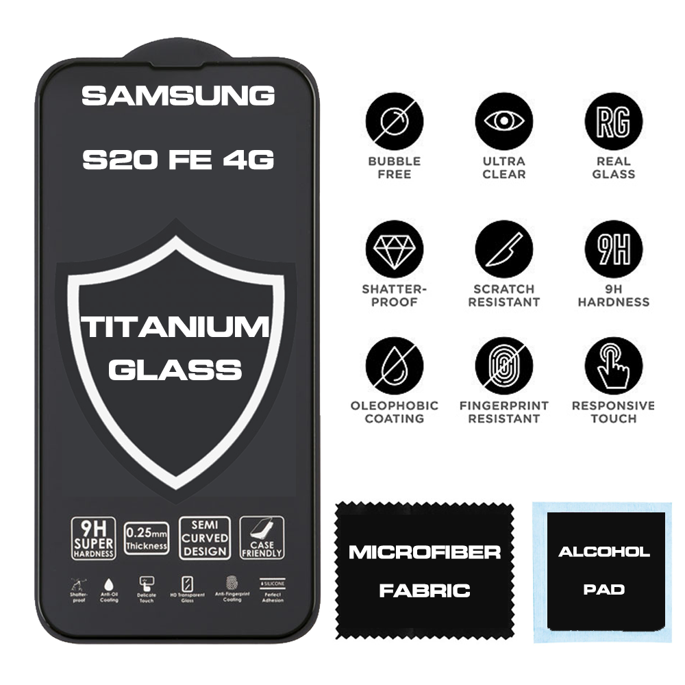TITANIUM TEMPERED GLASS SAMSUNG S20 FE 4G G780 6.5" 9H 0.25mm FULL FACE FULL GLUE SEMI CURVED BLACK