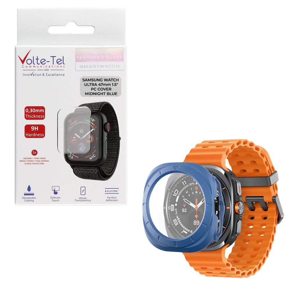 TEMPERED GLASS SAMSUNG WATCH ULTRA 47mm 1.5" 9H 0.30mm PC EDGE COVER WITH KEY 3D FULL GLUE FULL COVER MIDNIGHT BLUE