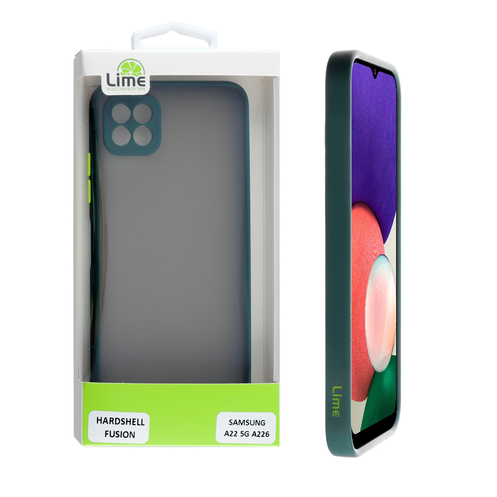 LIME ΘΗΚΗ SAMSUNG A22 5G A226 6.6" HARDSELL FUSION CAMERA GUARD DARK GREEN WITH YELLLOW KEYS