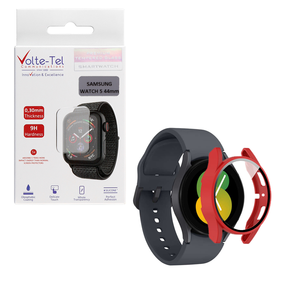 TEMPERED GLASS SAMSUNG WATCH 5 44mm R915 1.4" 9H 0.30mm PC EDGE COVER WITH KEY 3D FULL GLUE FULL COVER RED