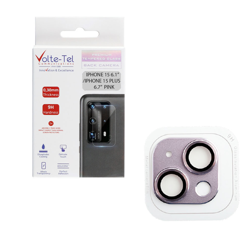CAMERA GLASS COVER IPHONE 15 6.1" / IPHONE 15 PLUS 6.7" 9H 0.30MM 3D AR ALUMINIUM-ELECTROPLATING FRAME PINK