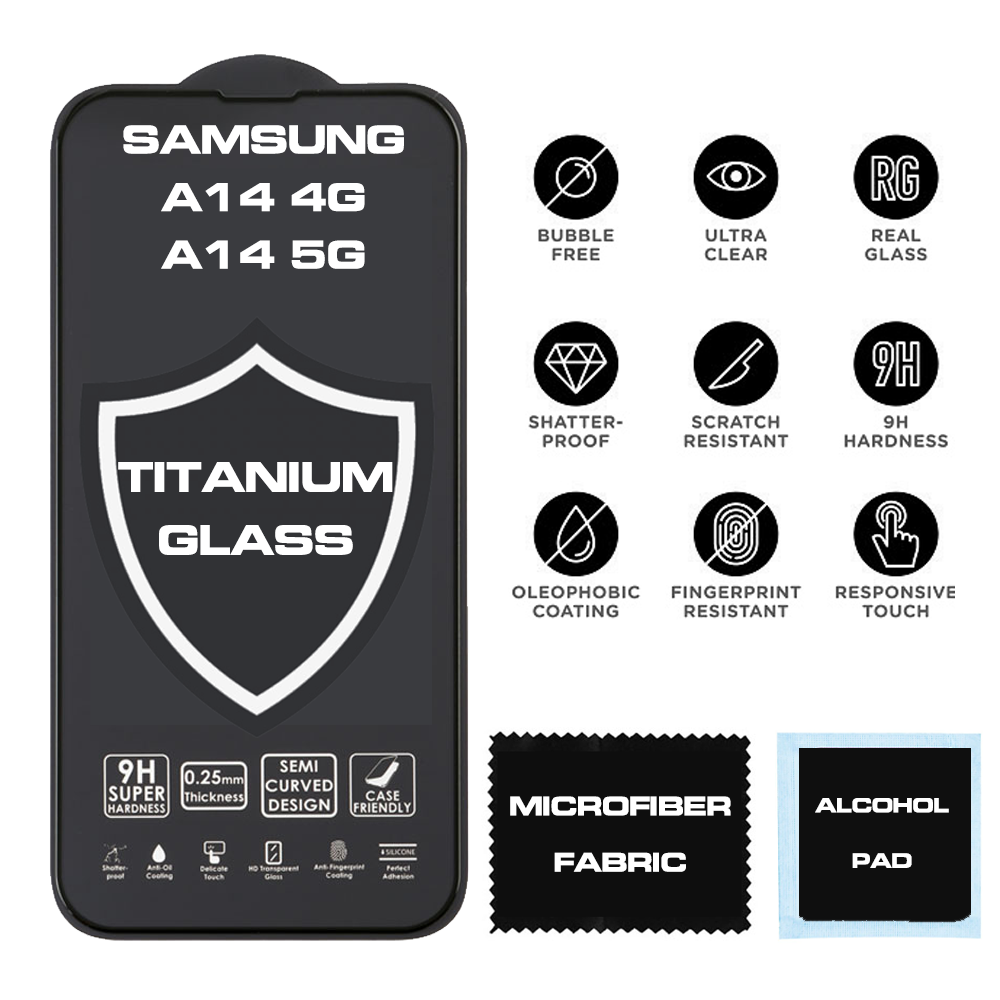 TITANIUM TEMPERED GLASS SAMSUNG A14 4G A145 / A14 5G A146 6.6" 9H 0.25mm FULL FACE FULL GLUE SEMI CURVED BLACK