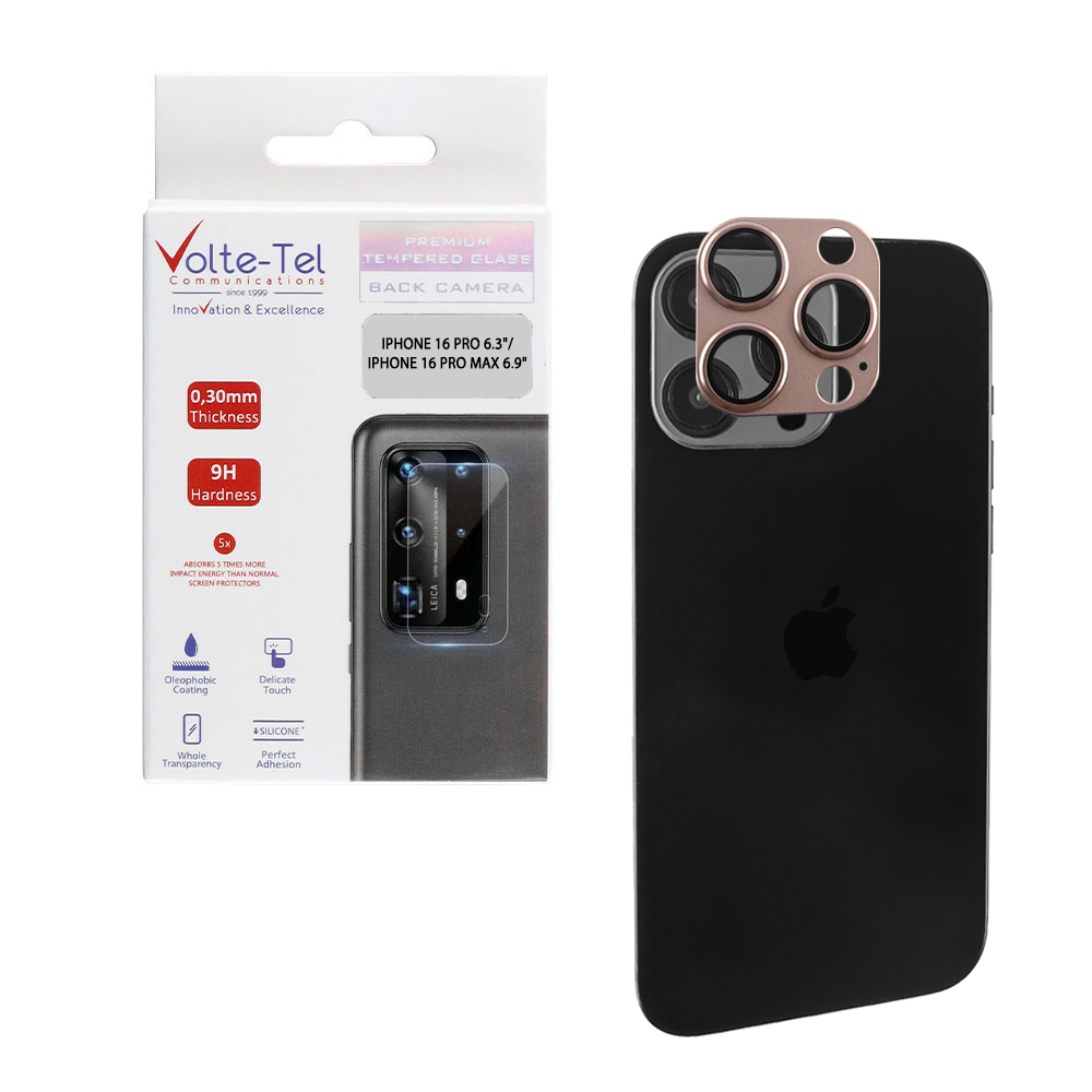 VOLTE-TEL CAMERA GLASS COVER IPHONE 16 PRO 6.3" / IPHONE 16 PRO MAX 6.9" 9H 0.30MM 3D AR ALUMINIUM-ELECTROPLATING FRAME BROWN