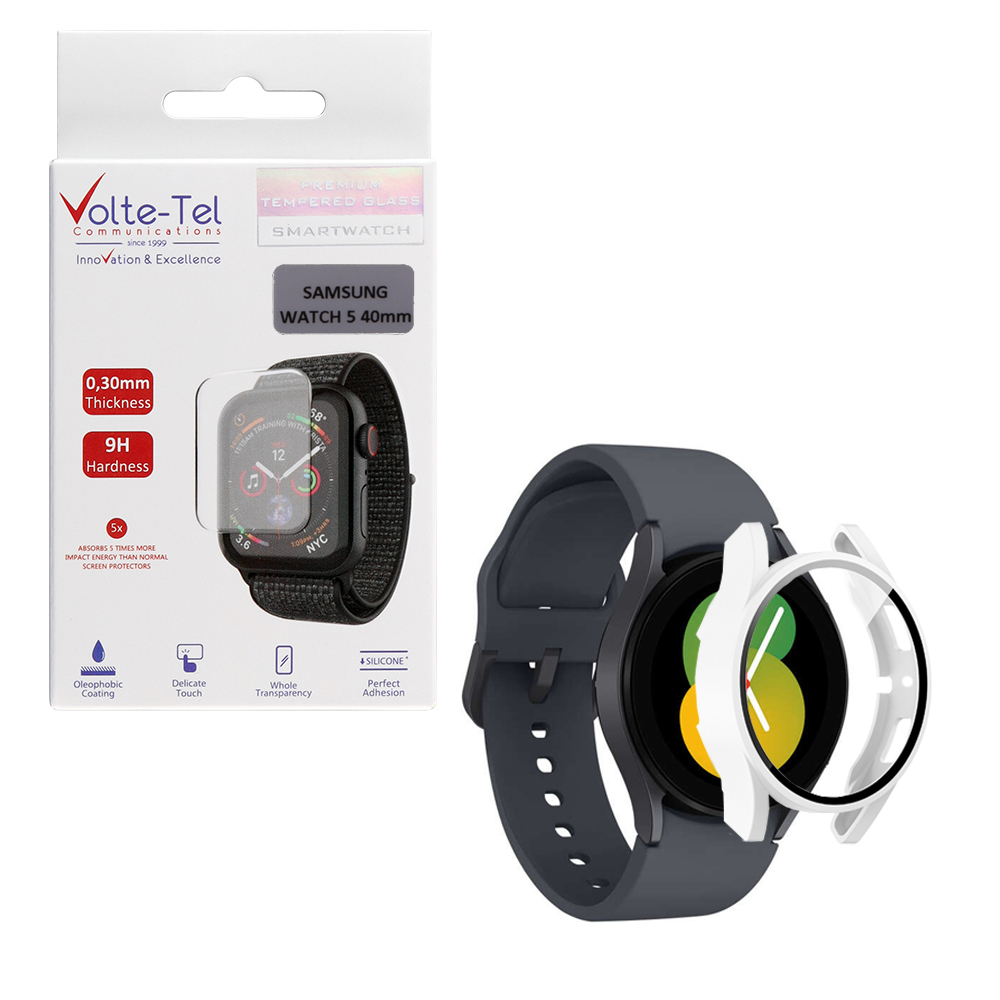 TEMPERED GLASS SAMSUNG WATCH 5 40mm 1.2" 9H 0.30mm PC EDGE COVER WITH KEY 3D FULL GLUE FULL COVER WHITE