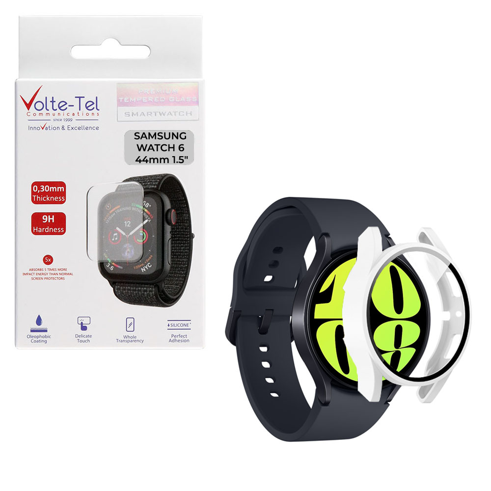 TEMPERED GLASS SAMSUNG WATCH 6 44mm 1.5" 9H 0.30mm PC EDGE COVER WITH KEY 3D FULL GLUE FULL COVER WHITE