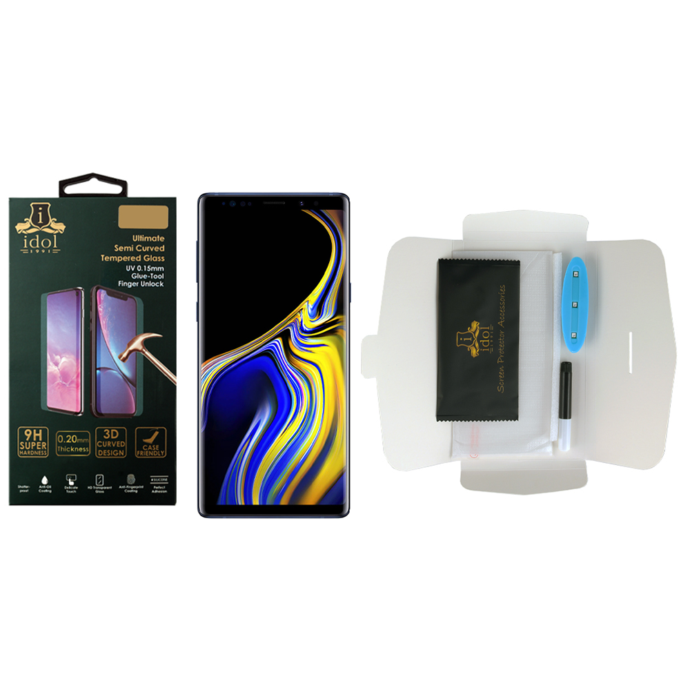 TEMPERED UV GLASS SAMSUNG N960 NOTE 9 6.4" 9H 0.20mm 10D SEMI WITH GLUE-TOOL FINGER UNLOCK FULL COVER TRANSPARENT