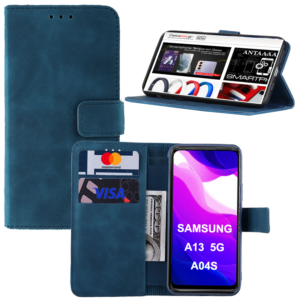 ΘΗΚΗ SAMSUNG A04s A047 / A13 5G A136U 6.5" ΠΟΡΤΟΦΟΛΙ ΔΕΡΜΑΤΙΝΗΣ FEEL SKIN ME ΜΑΓΝΗΤΙΚΟ CLIP BLUE