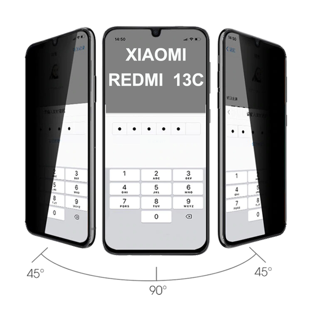 PRIVACY ANTISPY TEMPERED GLASS XIAOMI REDMI 13C 6.74" 9H 0.30mm FULL FACE FULL GLUE BLACK