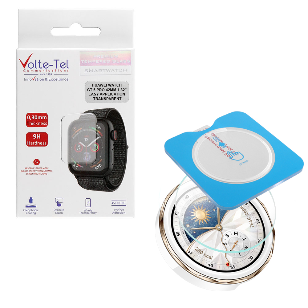 VOLTE-TEL TEMPERED GLASS HUAWEI WATCH GT 5 PRO 42MM 1.32" 9H 0.30mm 2.5D EASY APPLICATION FULL GLUE FULL COVER TRANSPARENT