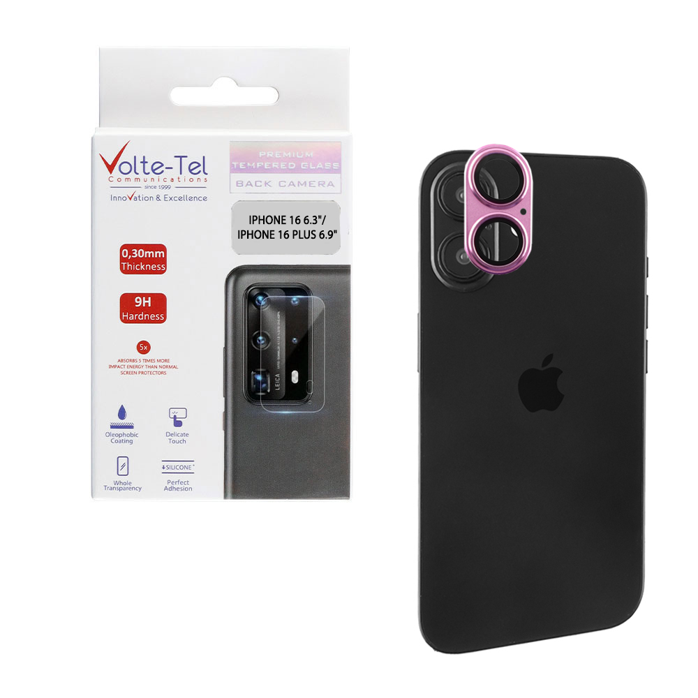 VOLTE-TEL CAMERA GLASS COVER IPHONE 16 6.3" / IPHONE 16 PLUS 6.9" 9H 0.30MM 3D AR ALUMINIUM-ELECTROPLATING FRAME PINK